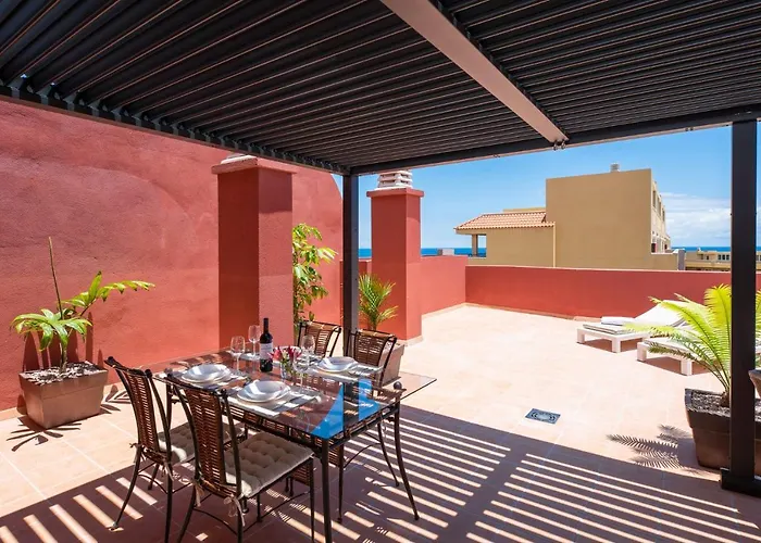 2-pokojowy apartament Medano4You The Terrace Holiday Home El Médano znajduje się w El Médano, 5 km od lotniska Tenerife Sur. Goście mogą zrelaksować się w basenie.